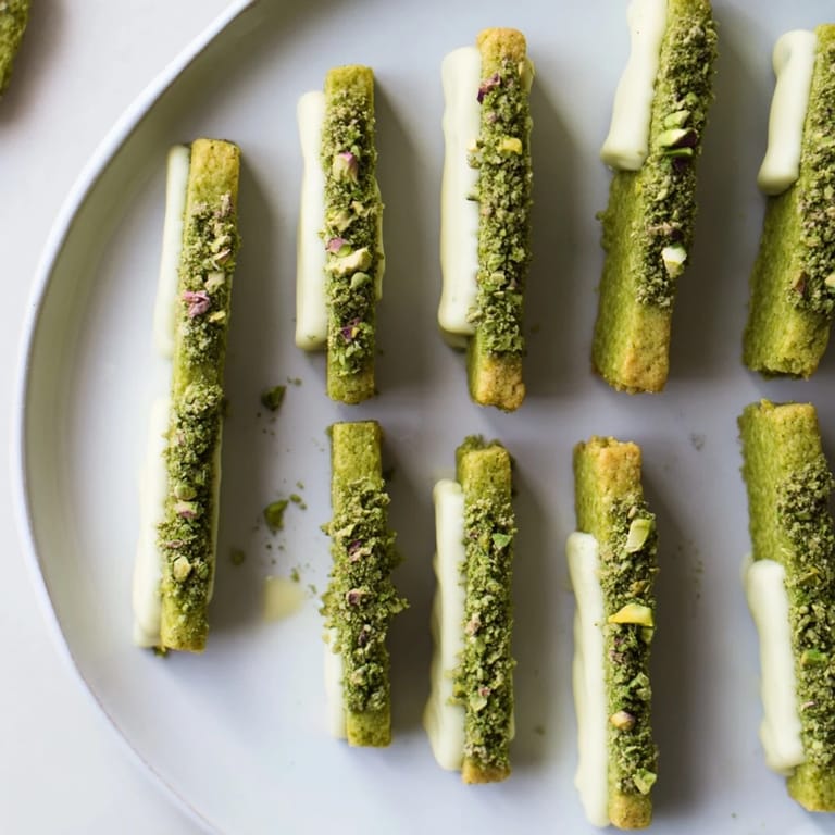 Save Buttery, crisp matcha-flavored cookie sticks perfect for pairing with cheeses, fruits, or chocolate on a charcuterie board. These delicate cookies add a unique, subtly sweet touch to your spread.