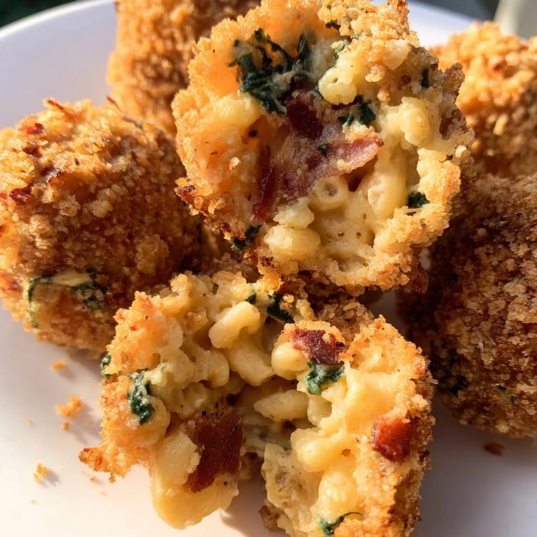 Save Tiny parcels of cheesy comfort, these mac and cheese bacon spinach poppers transform the flavors of a beloved classic into a crowd-pleasing bite. Picture creamy macaroni and cheese, smoky bacon, and tender spinach all bundled in a crispy coating the kind of snack that always disappears first at parties and family gatherings.