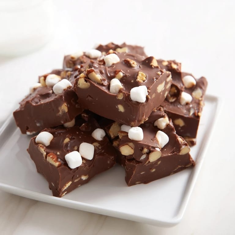 Save A rich, creamy chocolate fudge loaded with mini marshmallows, ready in just minutes using the microwave. Perfect for holiday treats or last-minute desserts.