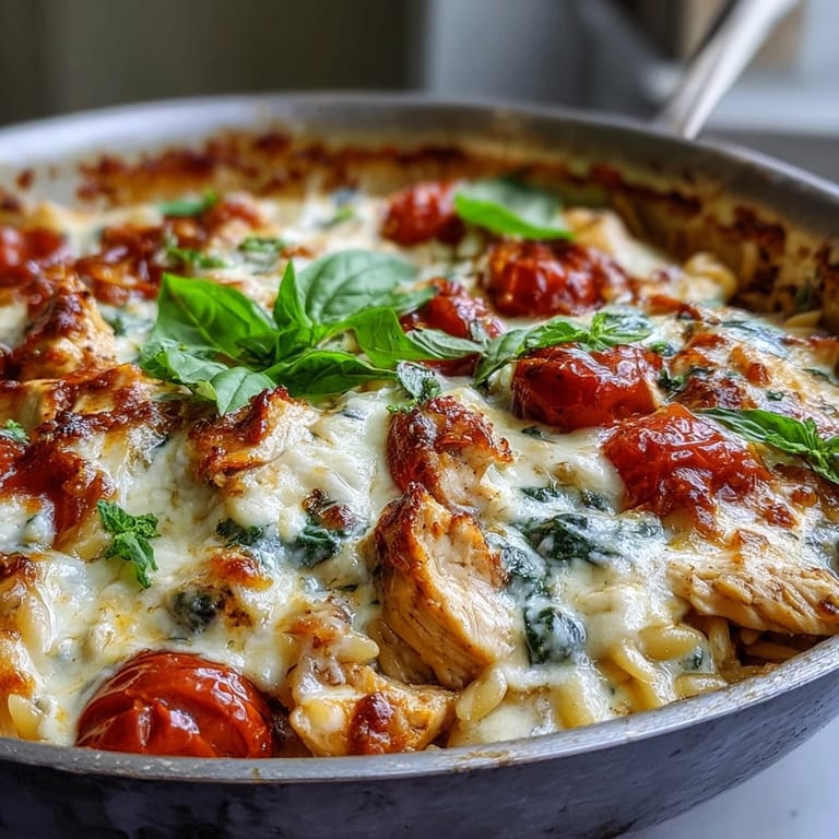 Save There's something magical about the moment when you realize you don't need a full lasagna pan and three hours to capture that cozy, cheesy comfort. One rainy Tuesday, I stood at my stove with leftover rotisserie chicken, a can of tomatoes, and maybe twenty minutes before guests arrived, wondering if I could pull off something that tasted like Sunday dinner. That's when this one-pan orzo came together, and honestly, it became the weeknight answer I didn't know I needed.