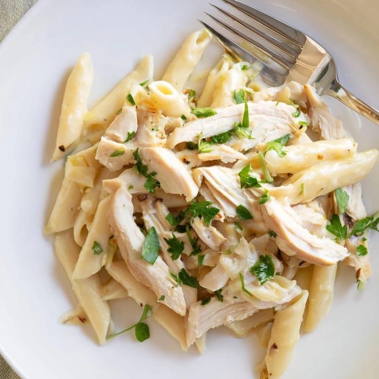 Save The smell of garlic roasting in foil is one of those kitchen scents that makes everyone wander in asking what's for dinner. I stumbled onto this dish on a Wednesday night when I had leftover penne and chicken breasts that needed using. Instead of my usual quick sauté, I tossed a whole garlic head into the oven just to see what would happen. That decision turned a simple pasta night into something my family requests by name now.