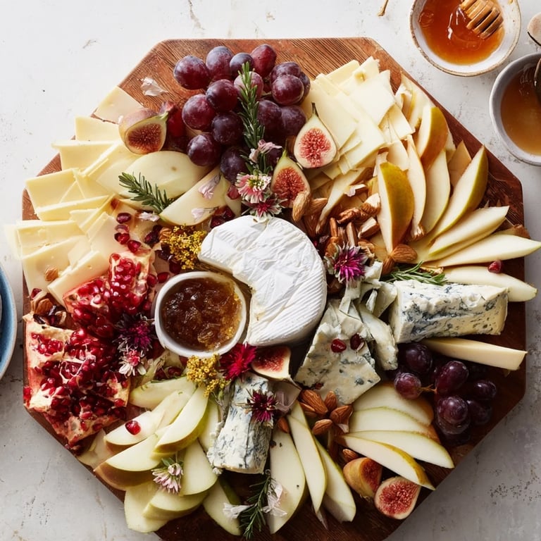 Save An elegant and visually stunning cheese platter inspired by the Star of Bethlehem featuring artisanal cheeses fresh fruit and gourmet accompaniments perfect for special occasions or festive gatherings
