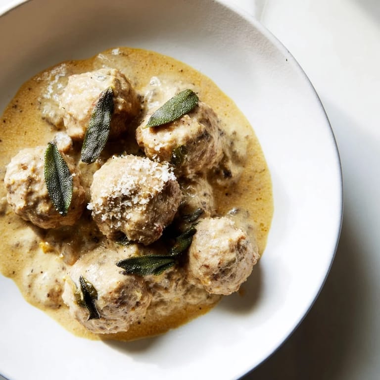 Save Juicy turkey meatballs simmered in a creamy, aromatic pumpkin sage sauce—an easy, comforting dish perfect for fall or any cozy evening.