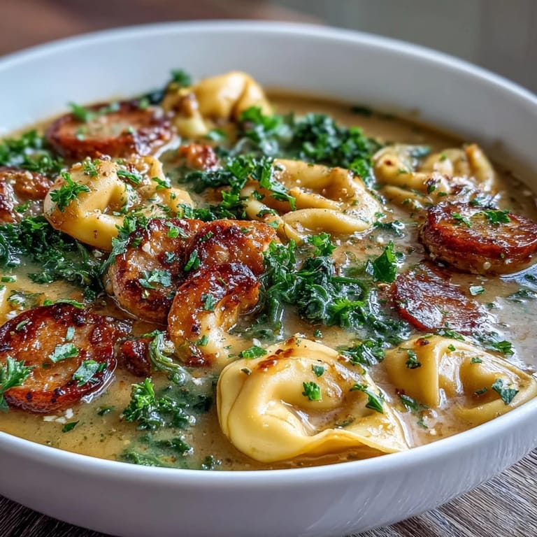 The heavy cream creates a luxurious texture that coats every tortellini, while the chicken sausage adds protein and depth. Each spoonful balances creamy, savory, and slightly sweet elements for a truly hearty meal that warms you from the inside out.