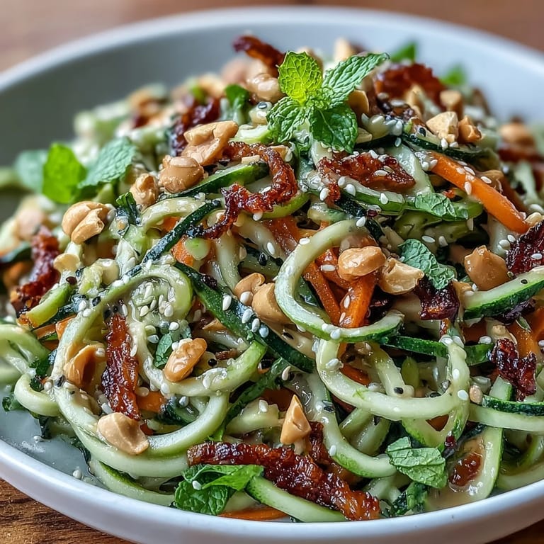 Save My neighbor brought this salad to a potluck on a sweltering July afternoon, and I watched it disappear faster than anything else on the table. The way the pale green zucchini noodles caught the light, all tangled with jewel-toned vegetables and glossy with that peanut sauce, made it look almost too vibrant to be real food. She mentioned it took her barely twenty minutes, which seemed impossible given how composed and intentional every element felt. That night I asked for the recipe, and I've been making it ever since whenever I need something that tastes indulgent but leaves me feeling light.
